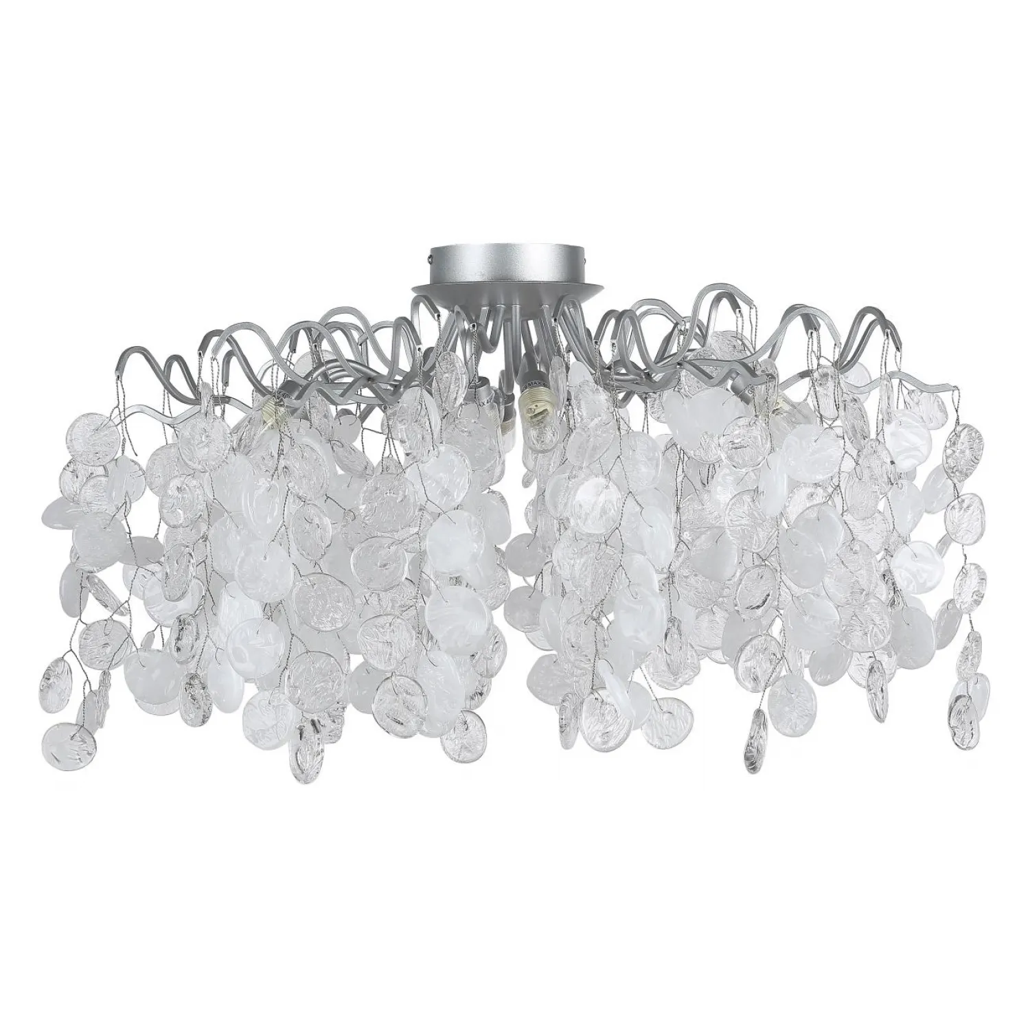 Светильник имеет кристальные подвески, которые создают великолепный игру света и тени, добавляя шарма и роскоши вашему интерьеру. Благодаря своему серебристому оттенку, он легко впишется в любой дизайн и станет ярким акцентом в вашем доме или офисе.