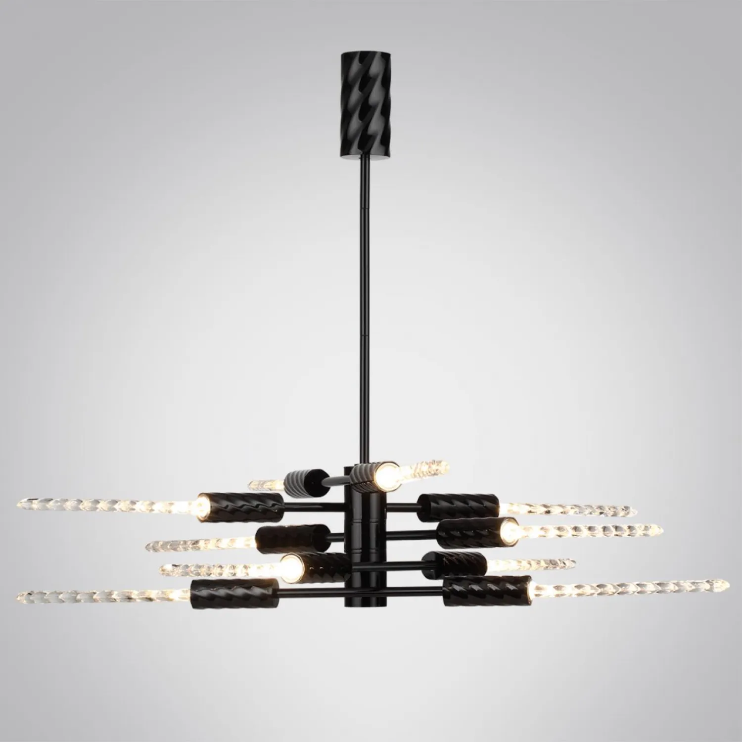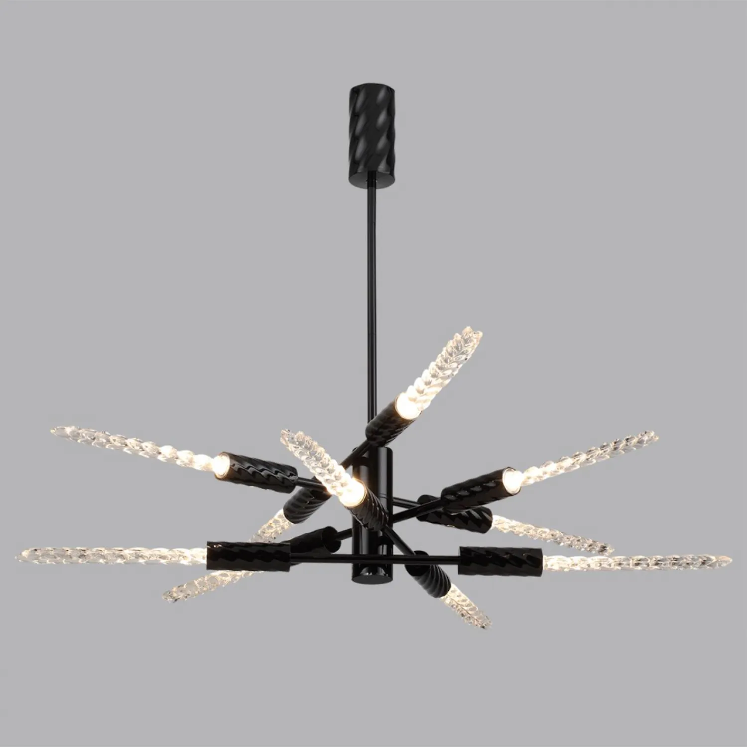 Линия светильников Kolos ― это истинная ода красоте природных форм. Стеклянные рассеиватели в виде колосков пшеницы выполняются вручную, они гармонично сочетаются с фактурным узором на металлических деталях светильников. Линия выполнена в двух вариантах цвета металла ― черном глянцевом и цвете латуни. Люстры линии Kolos могут регулироваться по высоте благодаря наборной штанге.