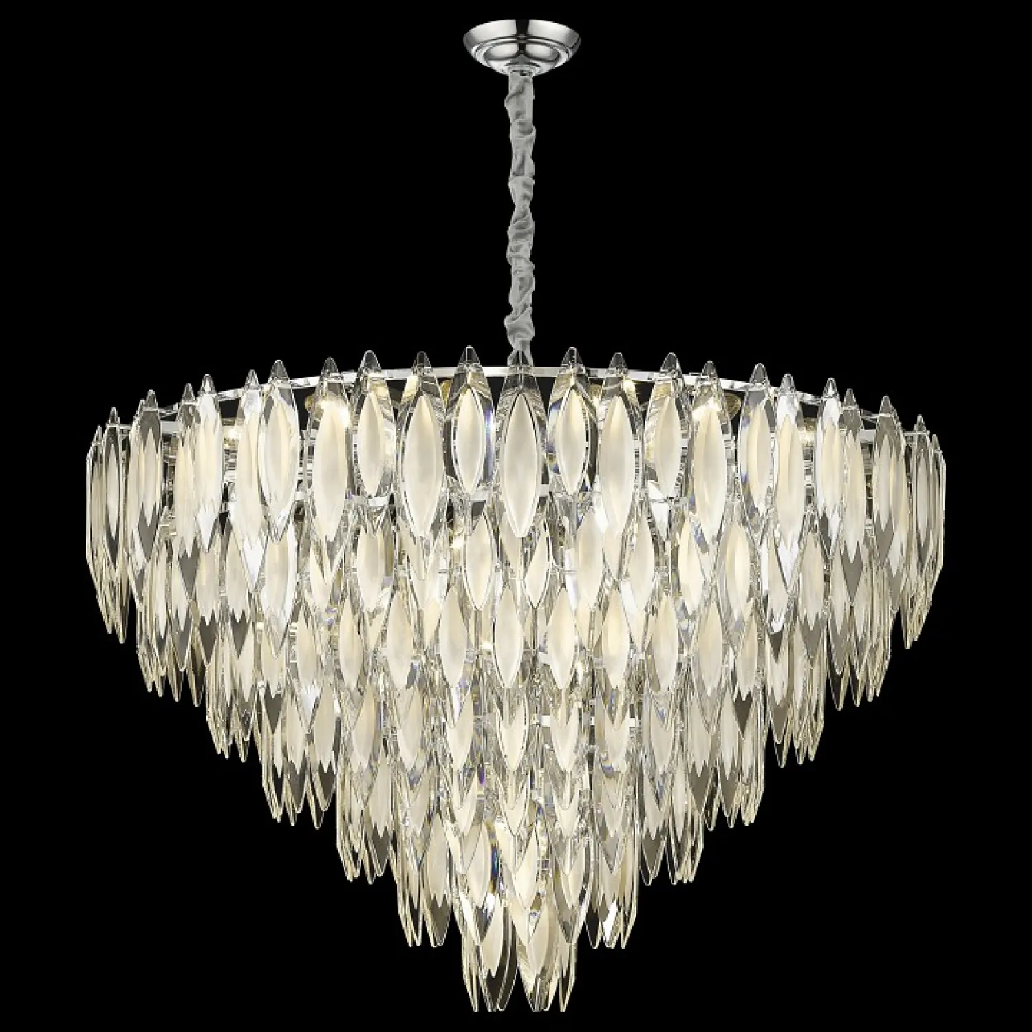 Светильник оснащен тремя плафонами, выполненными из прозрачного стекла, которые создают яркий и равномерный свет. Они позволяют распределить свет по всему помещению, создавая уютную и комфортную атмосферу.