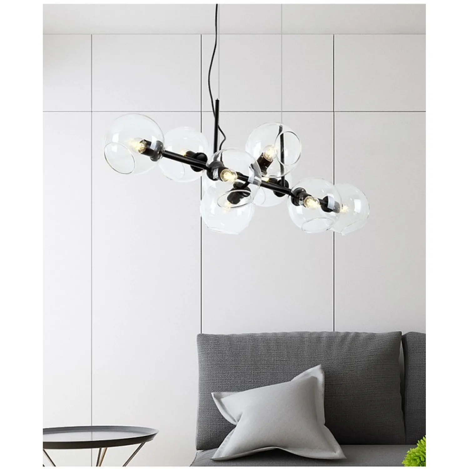 Эта потрясающая люстра изготовлена из высококачественного металла, который гарантирует ее долговечность и надежность. Благодаря своему дизайну с длинными, изящными плафонами из прозрачного стекла, она создает потрясающий эффект света и тени, добавляя особую атмосферу в ваше пространство.