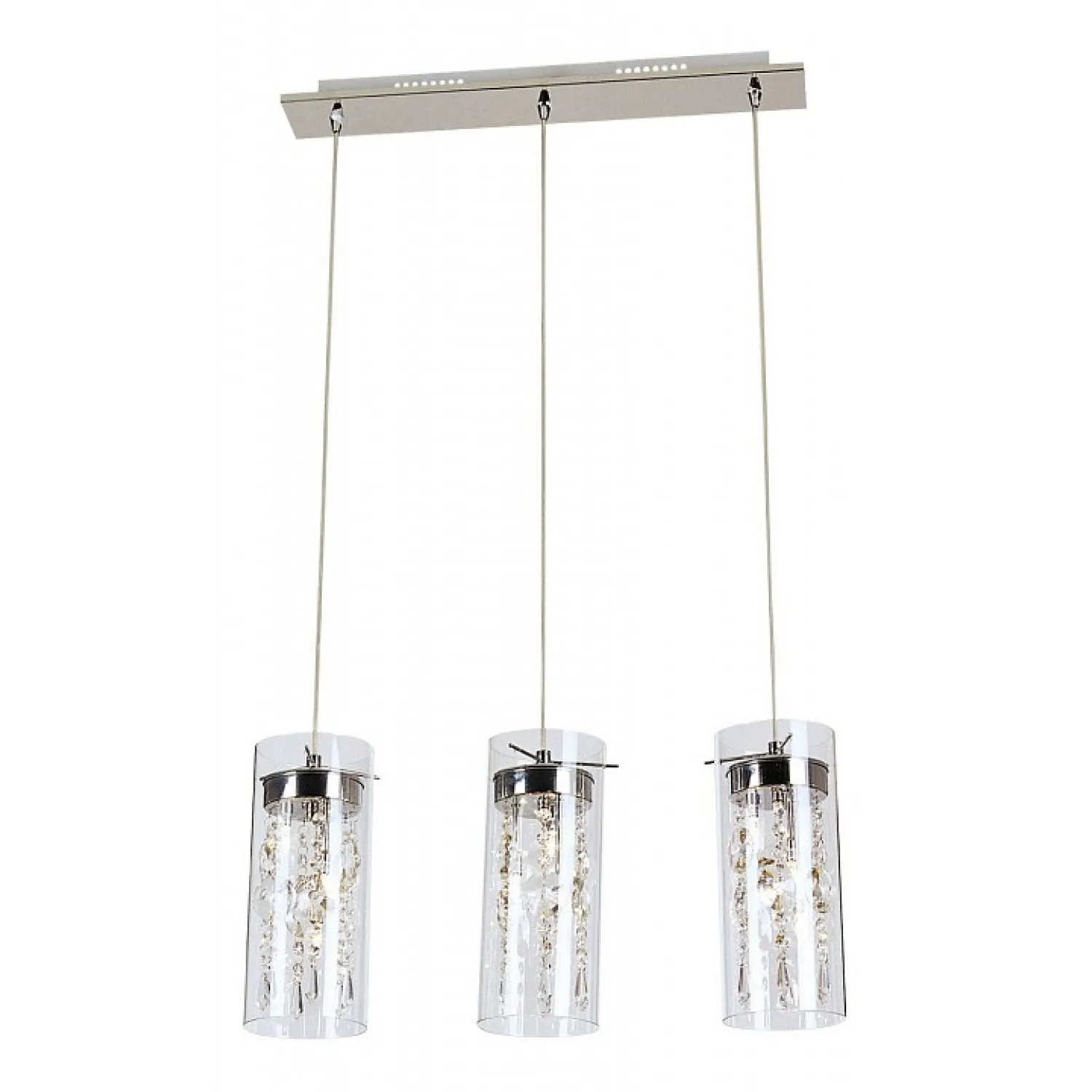 Светильник оснащен пятью плафонами, выполненными из прозрачного стекла, которые позволяют равномерно распределить свет и создать мягкое и приятное освещение.
