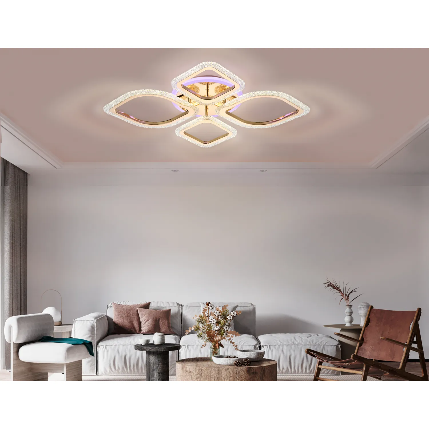 Потолочный светодиодный светильник из серии ACRYLICA, коллекция Original. Непревзойденная модель FA5149 выполнена в современном стиле Хай-тек. Светильник золотого цвета, изготовлен из акрила и металлического корпуса. В конструкцию этого светильника уже встроены светодиоды, что исключает поиск или замену дополнительных ламп. С помощью мобильного приложения и радиоуправляемого пульта вы сможете регулировать цветовую температуру, яркость освещения и ночной режим. Эти светильники подходят для натяжных потолков и будут прекрасным дополнением в гостиной, спальне или детской комнате.