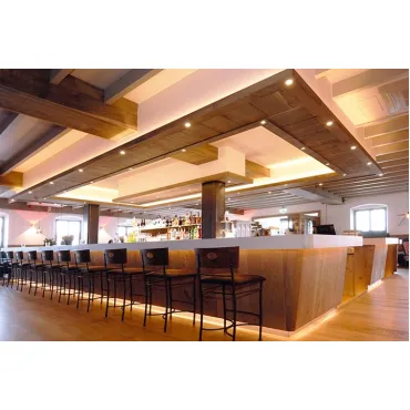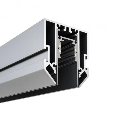 Шинопровод или трек представляет собой направляющий металлический (как правило, алюминиевый) профиль, похожий на рельс. Его монтируют к потолочной, иногда к настенной поверхности, а внутри уже размещаются трековые светильники. При необходимости отдельные части трека можно соединять друг с другом посредством специальных коннекторов (T-образных, крестовидных и др.) в единую конструкцию.