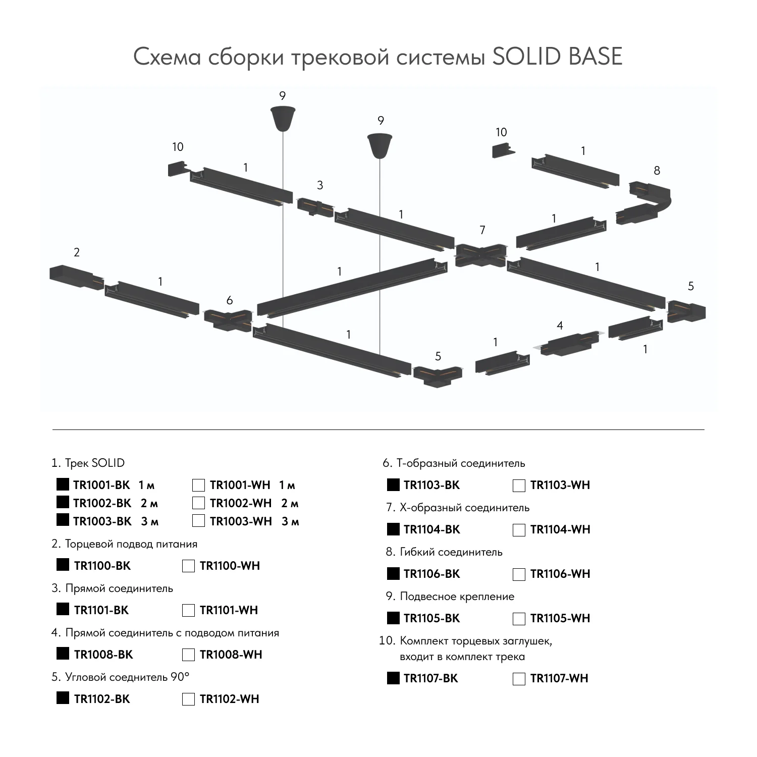 DENKIRS SOLID — однофазная трековая система, получившая широкое распространение на светотехническом рынке благодаря своей доступности, простоте и надежности. Трек системы Solid выполнен из прочного алюминиевого сплава, он не подвержен деформации и изгибам даже на больших отрезках. Это свойство особенно важно при подвесном монтаже. Система оснащена толстыми медными контактами, что гарантирует надежность и обеспечивает высокую максимально допустимую мощность. Надежные и прочные комплектующие трековой системы SOLID BASE, изготовленные из высококачественного алюминиевого сплава и акрила. В качестве проводников использованы утолщенные медные контакты, обеспечивающие высокую максимально допустимую мощность трековой системы. Благодаря продуманной конструкции и качественному алюминиевому сплаву трек не подвержен деформации, что особенно важно при подвесном монтаже. Торцевые заглушки идут в комплекте. Возможна установка на подвес (приобретается отдельно). Коннекторы и подвод питания приобретаются отдельно.