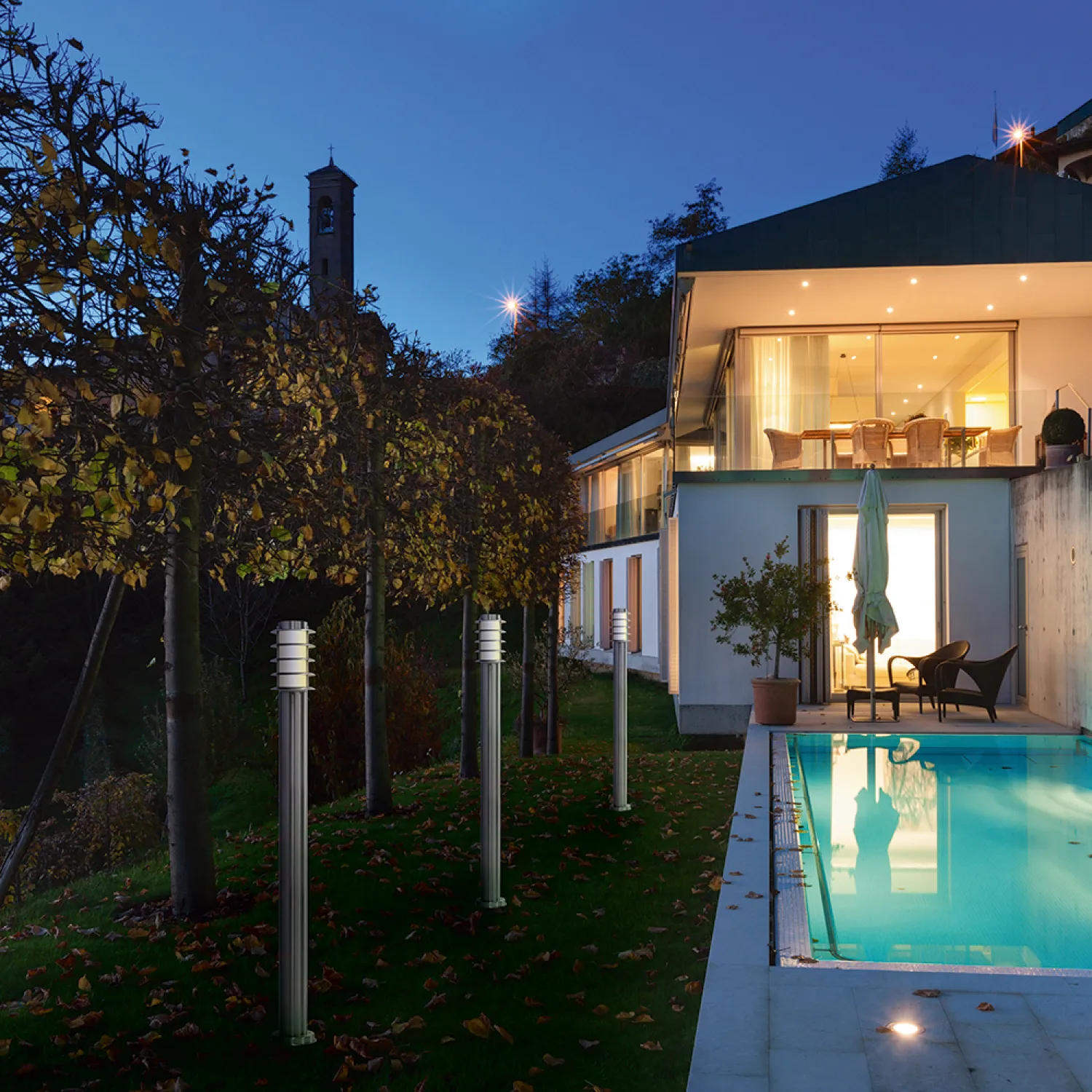 Светильник имеет прочную и надежную конструкцию, выполненную из качественных материалов, что обеспечивает долгий срок службы изделия. Благодаря своему высокому положению, он идеально подходит для освещения больших площадей и создания эффектной подсветки растений или архитектурных элементов.